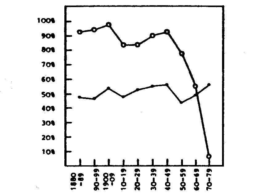 Figure 1: Proportion of Nikia-born Nikiates and female offspring 1880